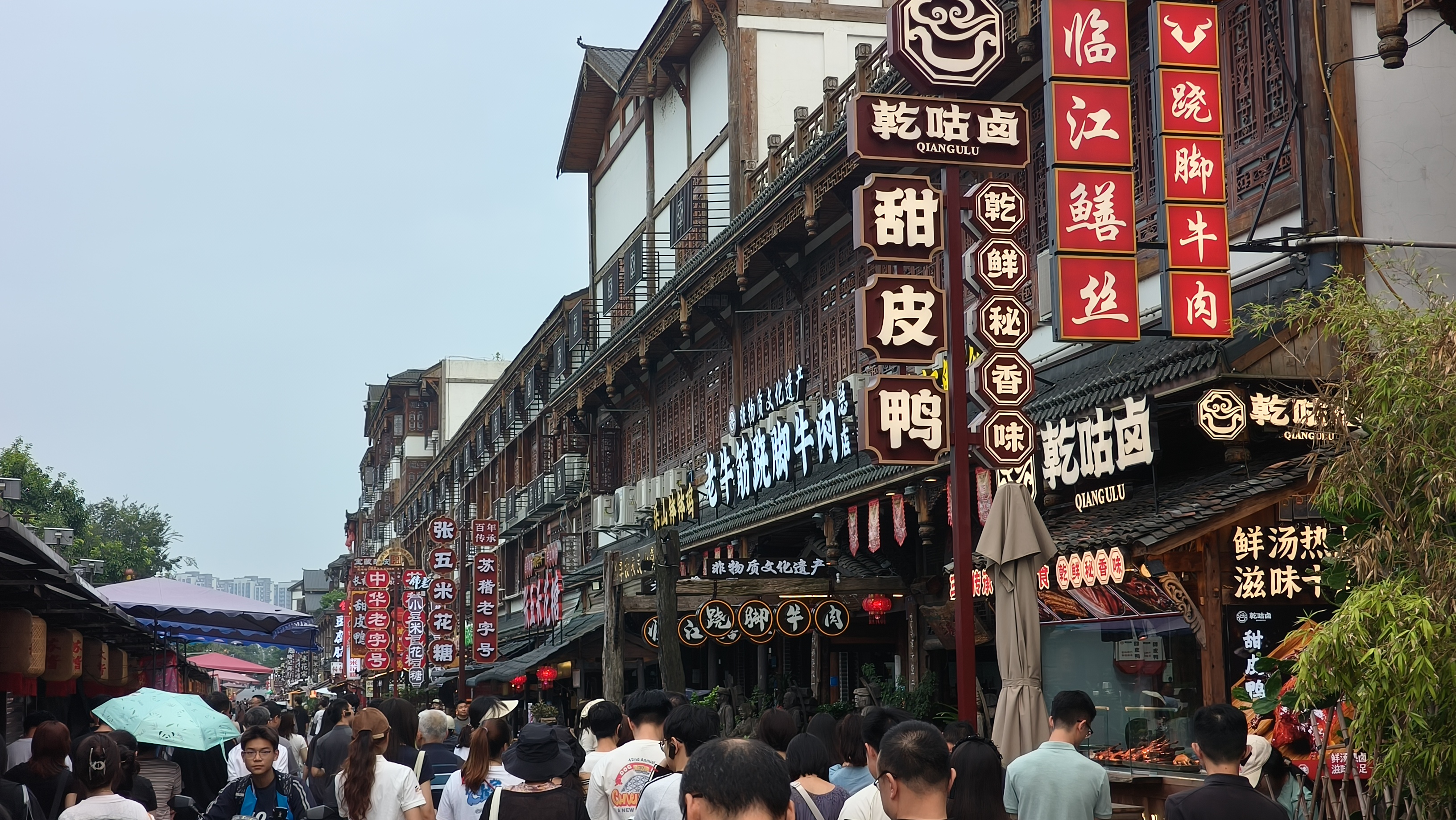 除了跷脚牛肉,甜皮鸭、米花糖、红糖锅盔的好意思食也常聚于此苏稽古镇,烟火气味与非遗在此互相兼并,塑造了片区独有的东谈主文魔力。