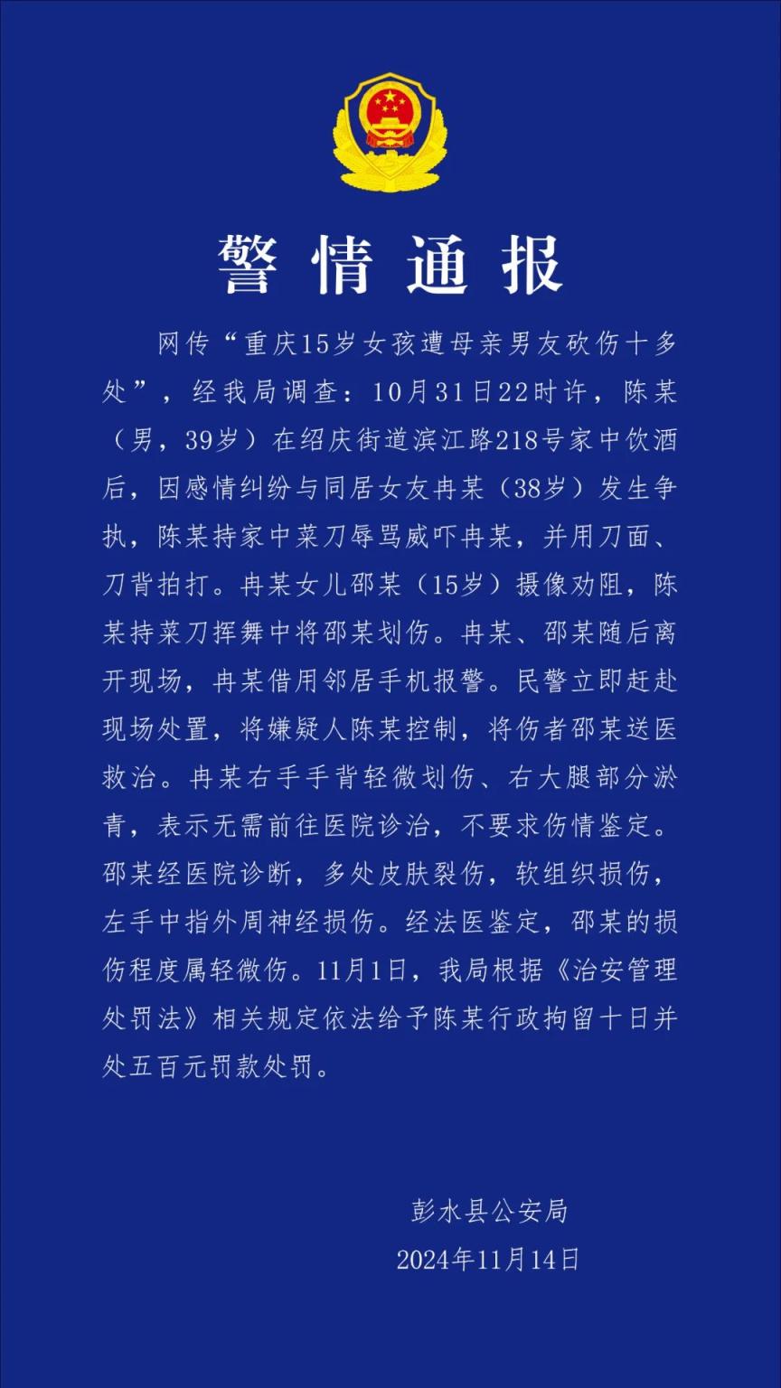 体育游戏app平台网传“重庆15岁女孩遭母亲男友砍伤”,当地警方通报-开云官网登录入口 开云app官网入口网页版登录入口/手机版